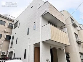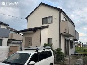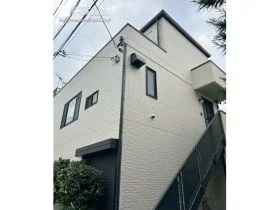 コンテンポラリー建築のナチュラルなアイボリーグレー色の外壁塗装