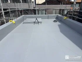 陸屋根と片流れの屋根を採用しています。ベランダがある箇所の屋根は陸屋根にして、スッキリしたデザインに。ガルバリウム鋼板を使用して、スタイリッシュな片流れ屋根とのバランスが美しい外観に仕上がっています。