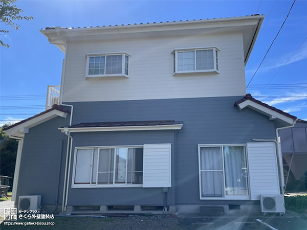 ・白とブルーグレーの組み合わせで爽やかな装いになった外壁塗装
