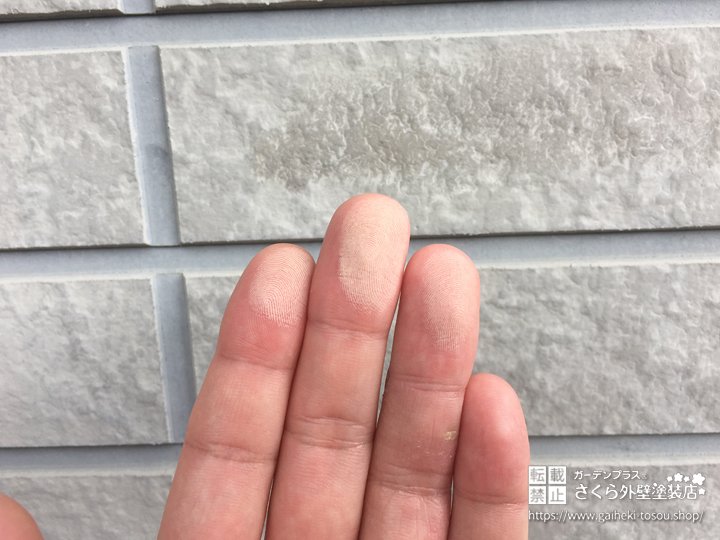 外壁を手でこすったときに手に白い粉が手につくのは「チョーキング現象」と呼ばれるもので、塗装の防水効果が切れてきているサインです。見た目に大きな異常がなくても、外壁はしっかり紫外線や雨風のダメージを受けており、サイディング塗装のタイミングが近い状態といえます。
