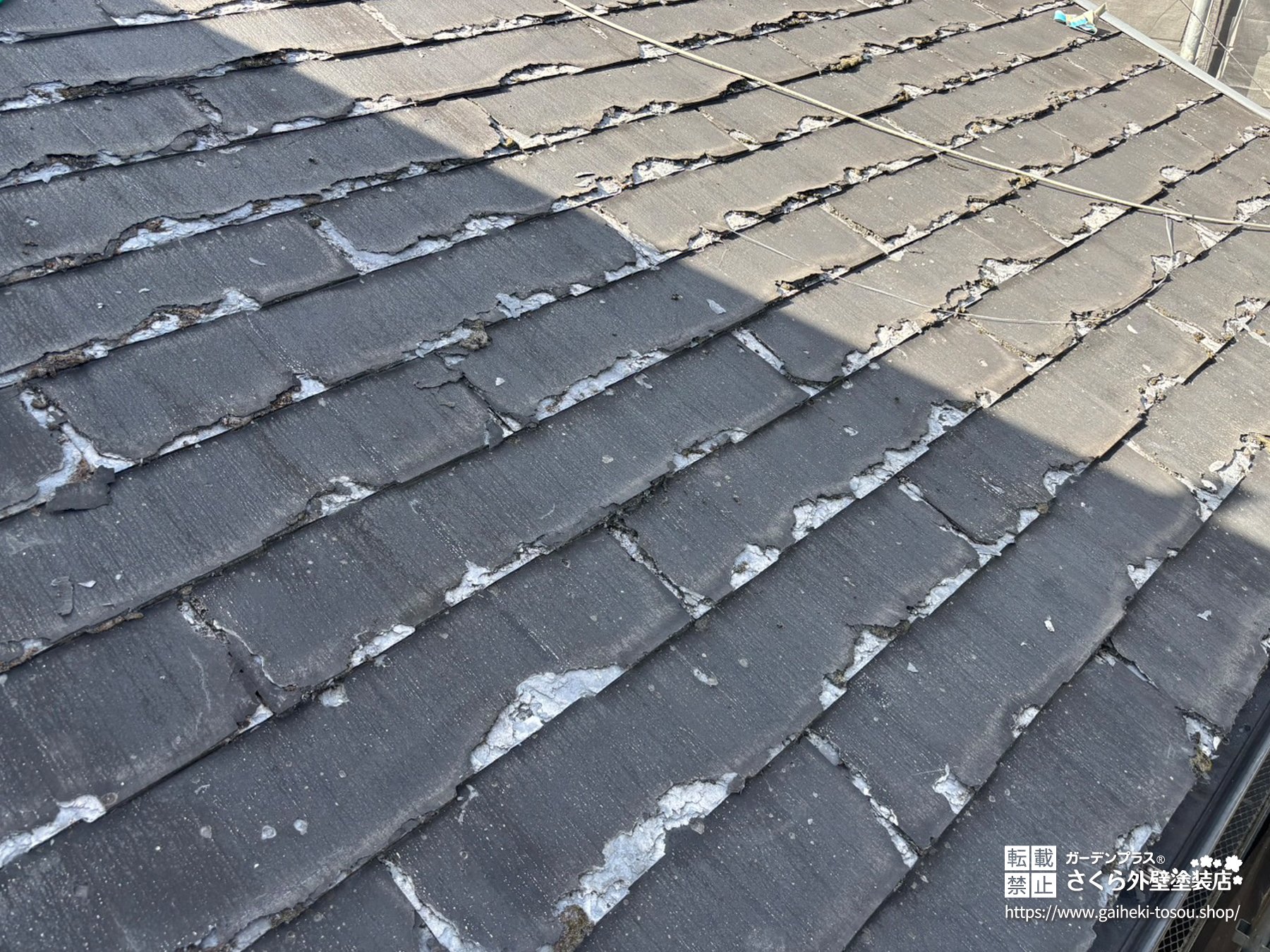 お客様自身が雨漏りに気づかれて点検をご依頼いただいたところ、屋根はこのような状態になっていました。