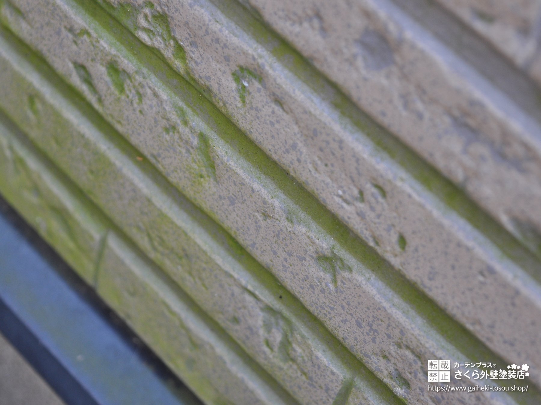 ・苔の緑や雨だれの黒ずみが目立つ!