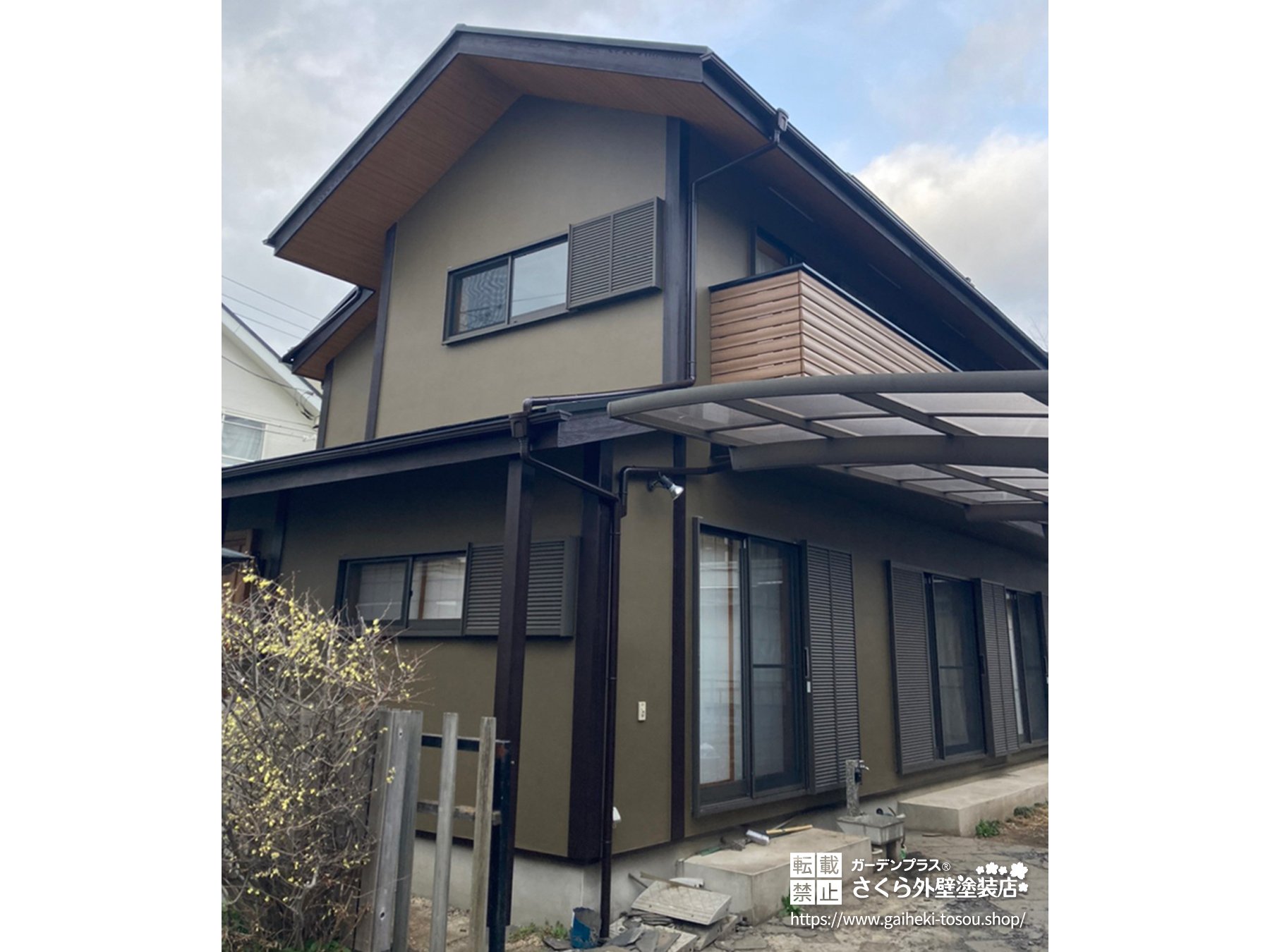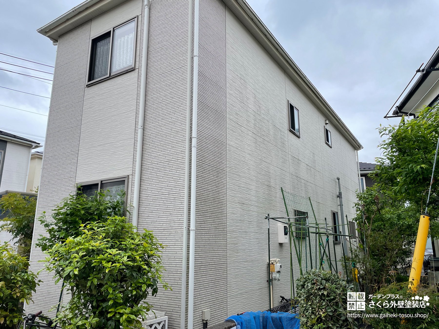 日光が当たりにくく、常に湿り気を帯びやすい環境には、植物の緑と同化する外壁色がおすすめです。