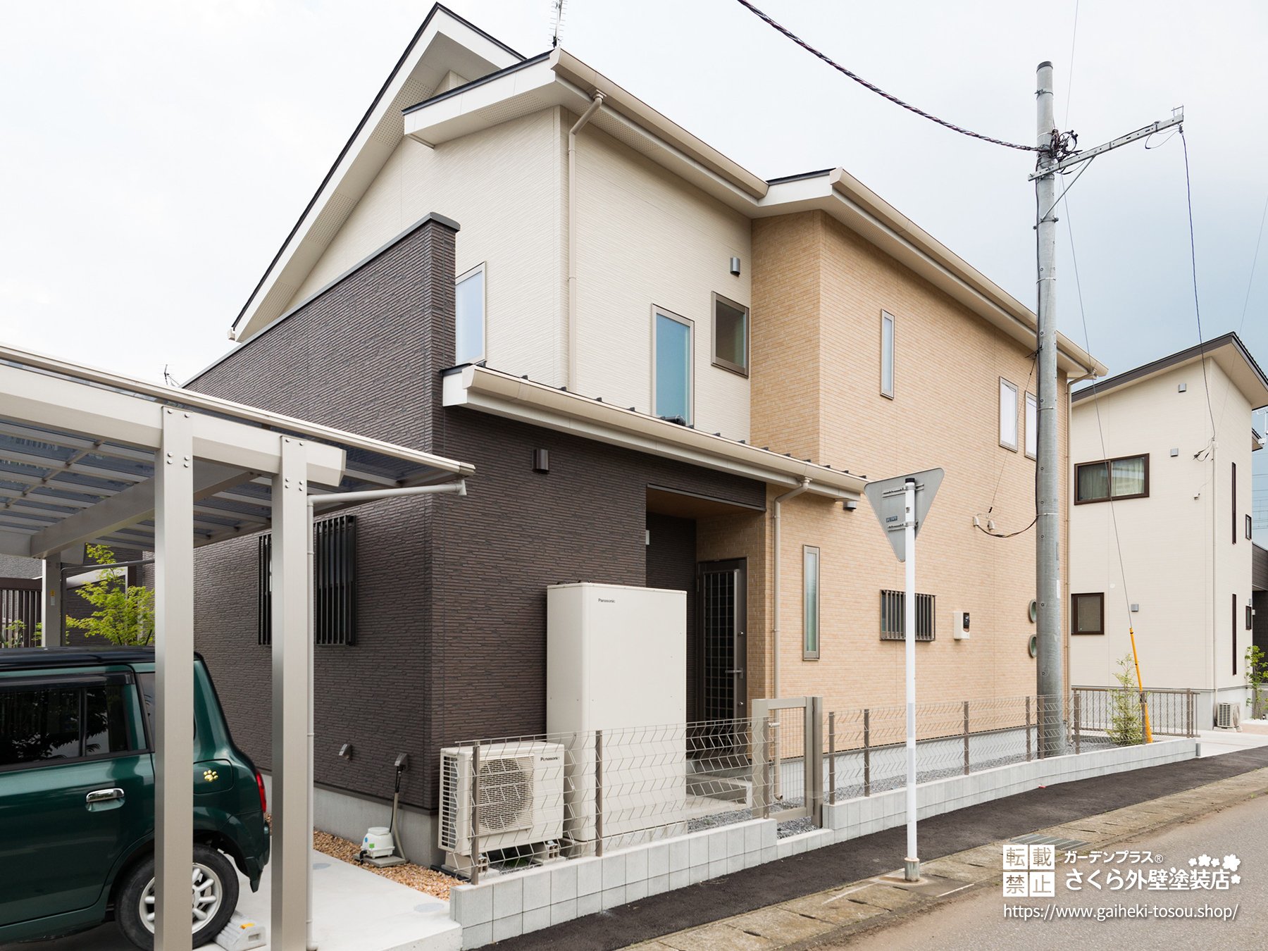 「北側に川がある」「庭の木々が壁に近くて湿気がすごい」など、苔の発生が避けられない環境には、グリーンの外壁がこれ以上ない選択肢になります。
