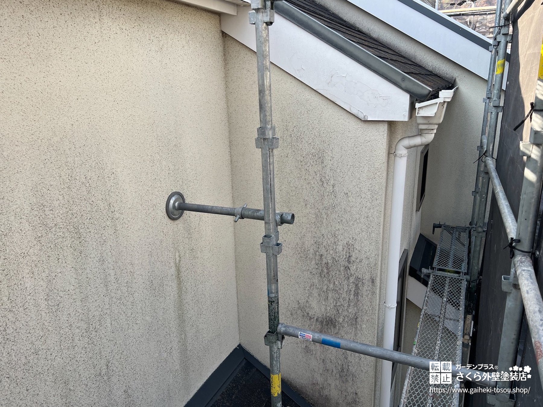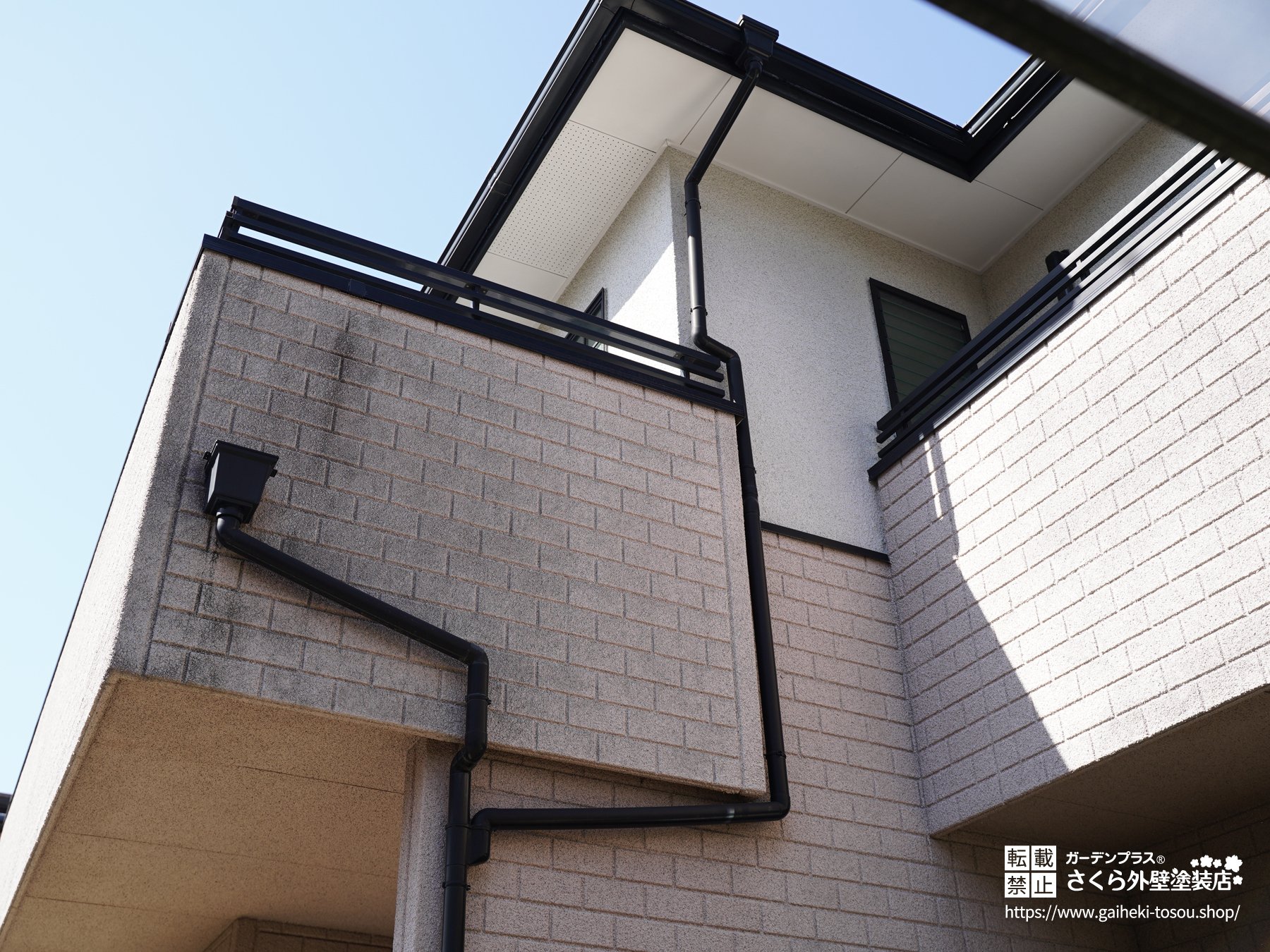 ブラックの外壁には、これらの白い粉末状の汚れが浮き出て見え、非常に汚れた印象を与えます。