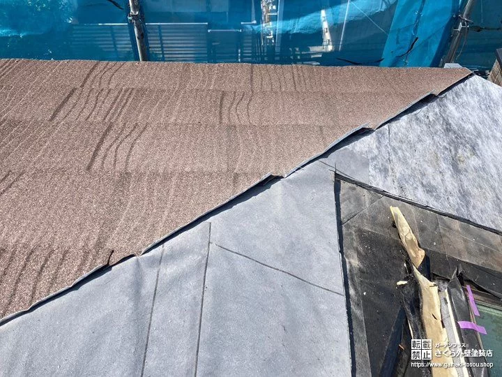 ![屋根カバー工法① 塗装ができない屋根材や劣化が著しく進んでいる屋根は、既存の屋根の上から新しい屋根材を取り付けるカバー工法で施工していきます。[防水シート貼り付け後] 屋根カバー工法① 塗装ができない屋根材や劣化が著しく進んでいる屋根は、既存の屋根の上から新しい屋根材を取り付けるカバー工法で施工していきます。[防水シート貼り付け後]](/public/img/construction/354/point1_other4_s.webp)
