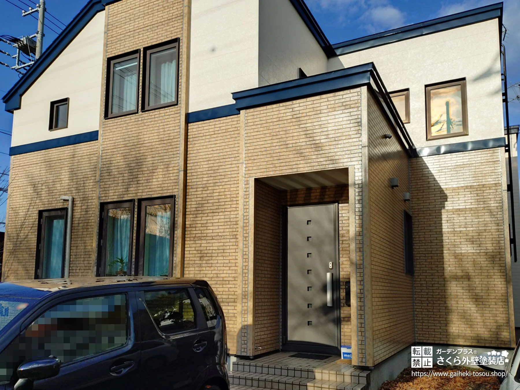 外壁材 窯業系サイディング レンガ調から大胆チェンジ!シックなブルーグレーでモダンに生まれ変わった外壁塗装・屋根塗装工事