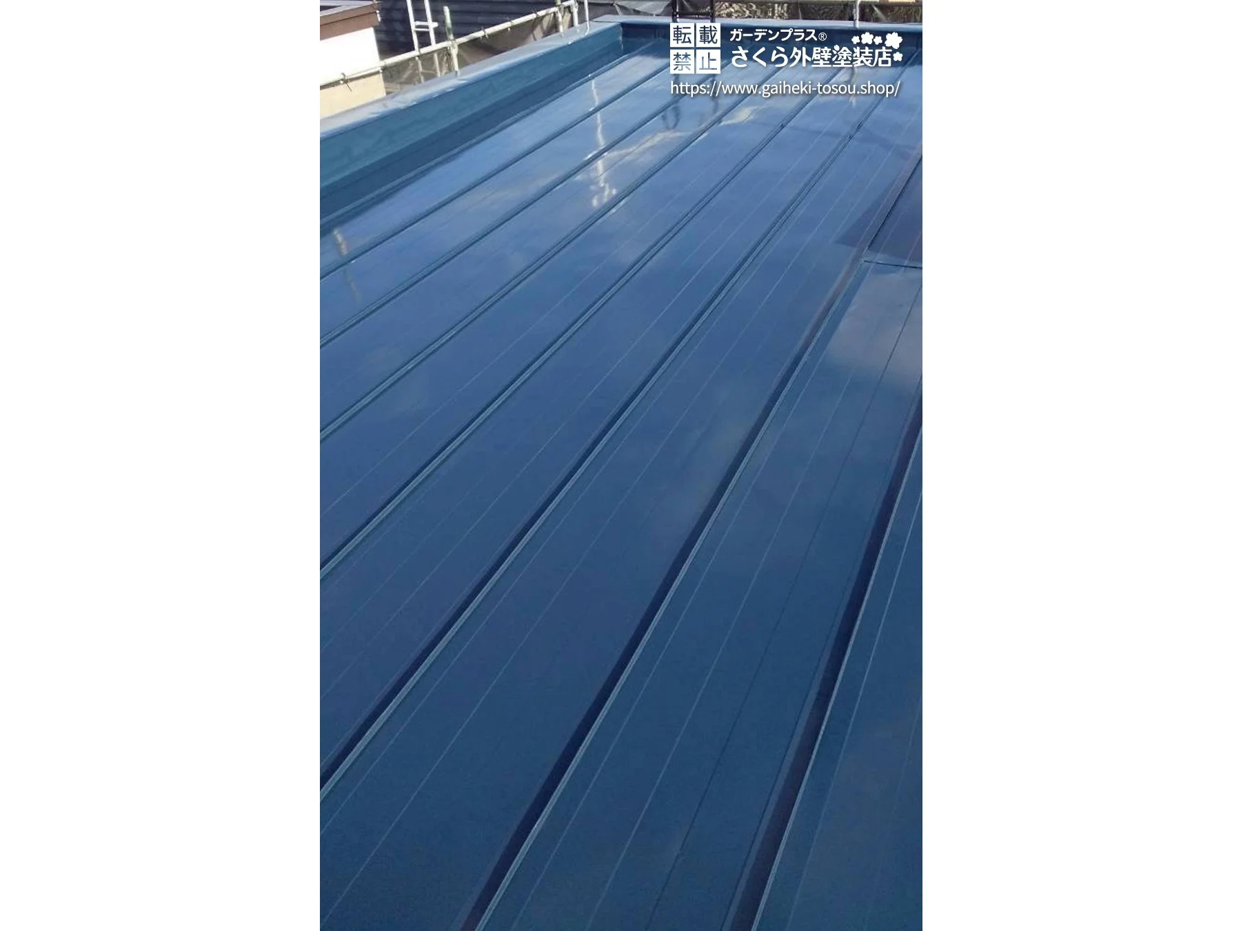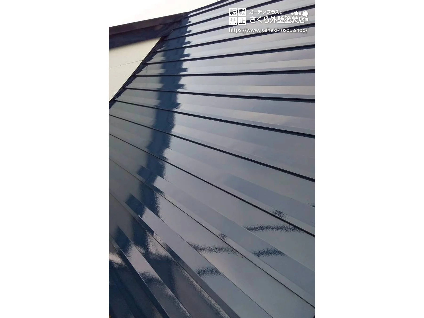 屋根は、錆止め・中塗り・上塗りの各工程を丁寧に行い、表面の状態を整えながら劣化を抑制。屋根塗装によって美観が向上し、建物全体の印象も引き締まりました。