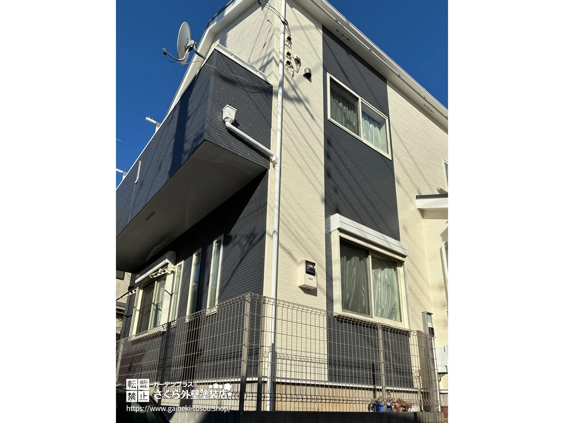 ホワイト×グレーのツートンで仕上げた外壁塗装工事