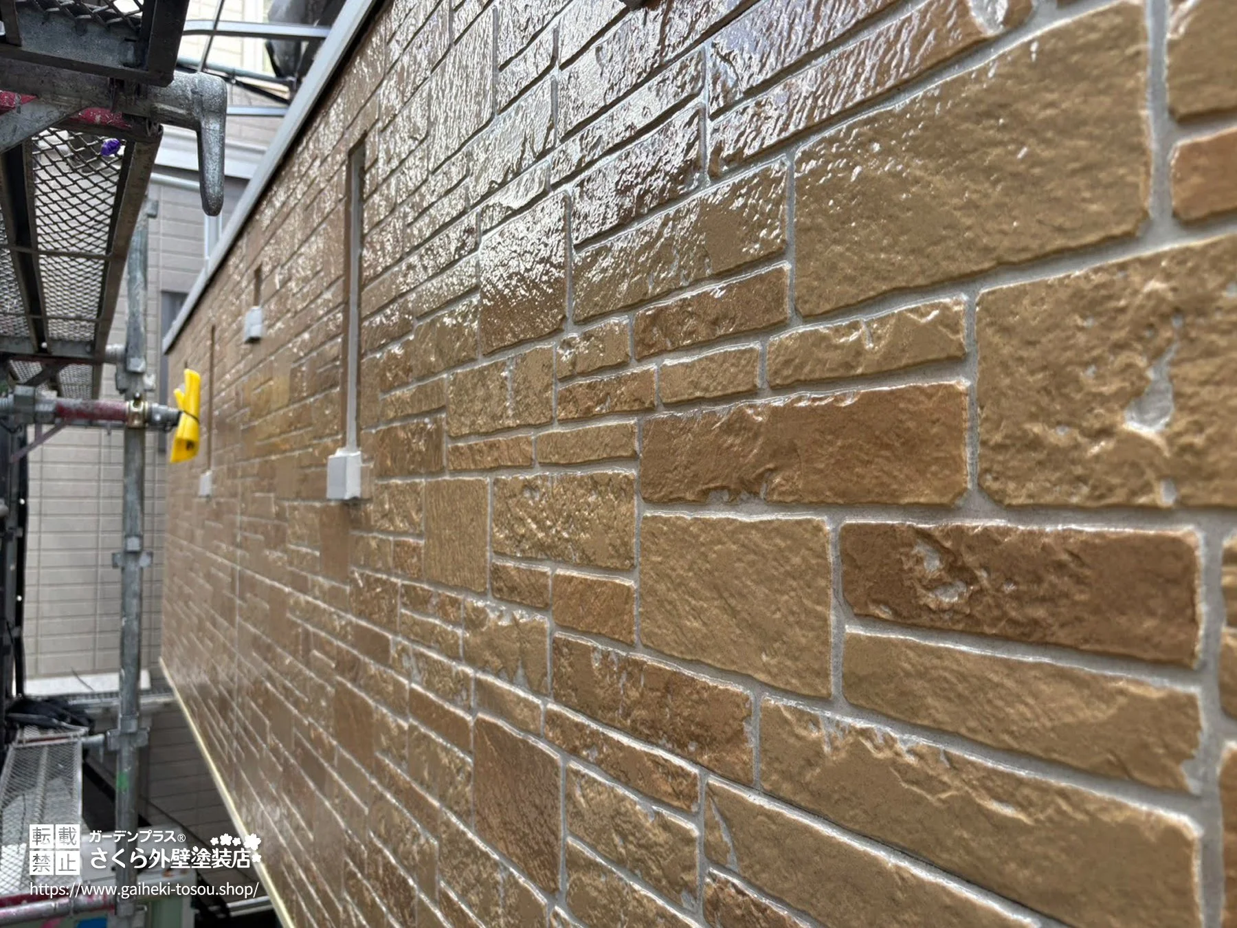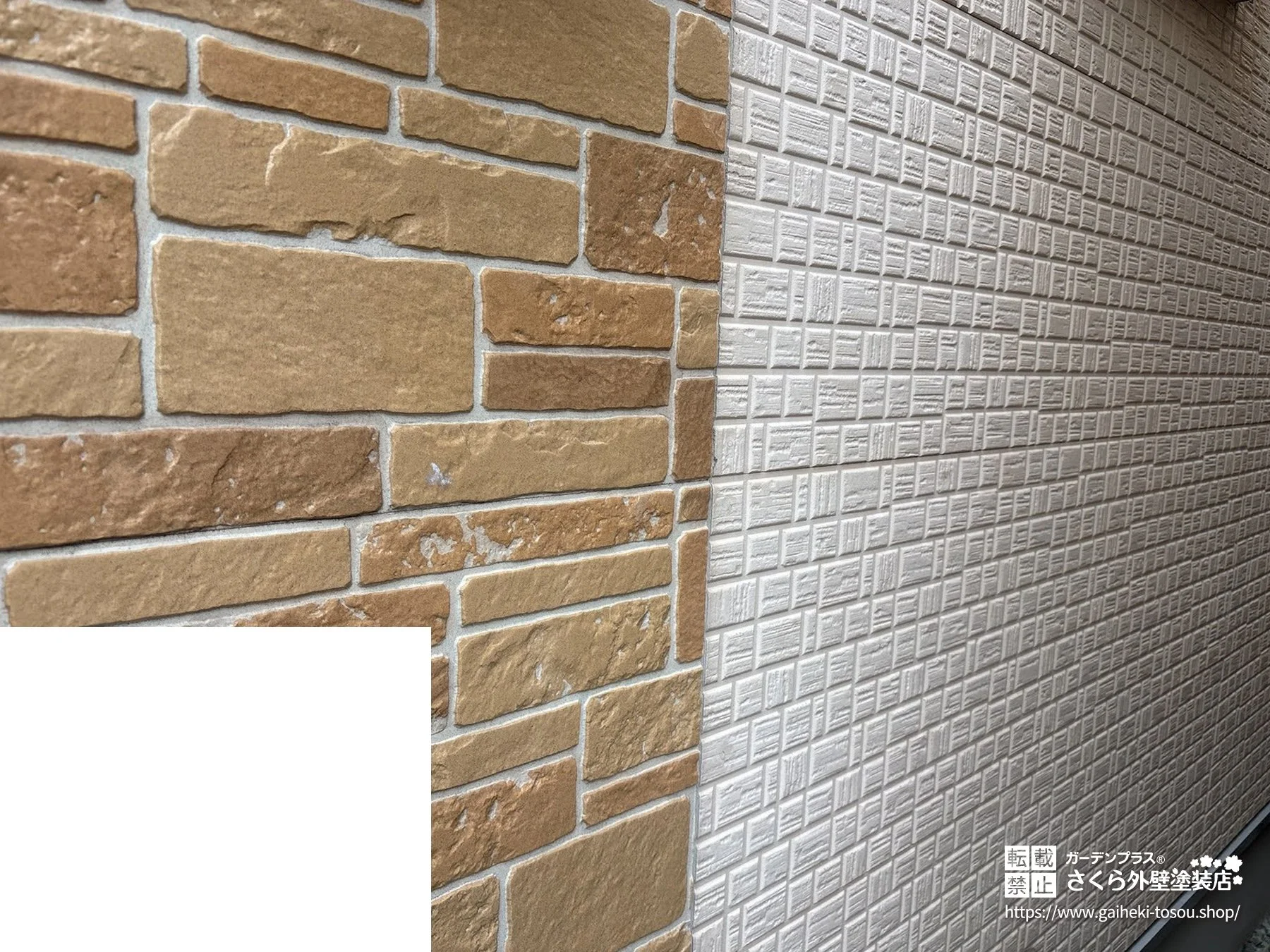 外壁材 窯業系サイディング クリア塗装でタイル調外壁の意匠を活かした外壁塗装・屋根塗装工事