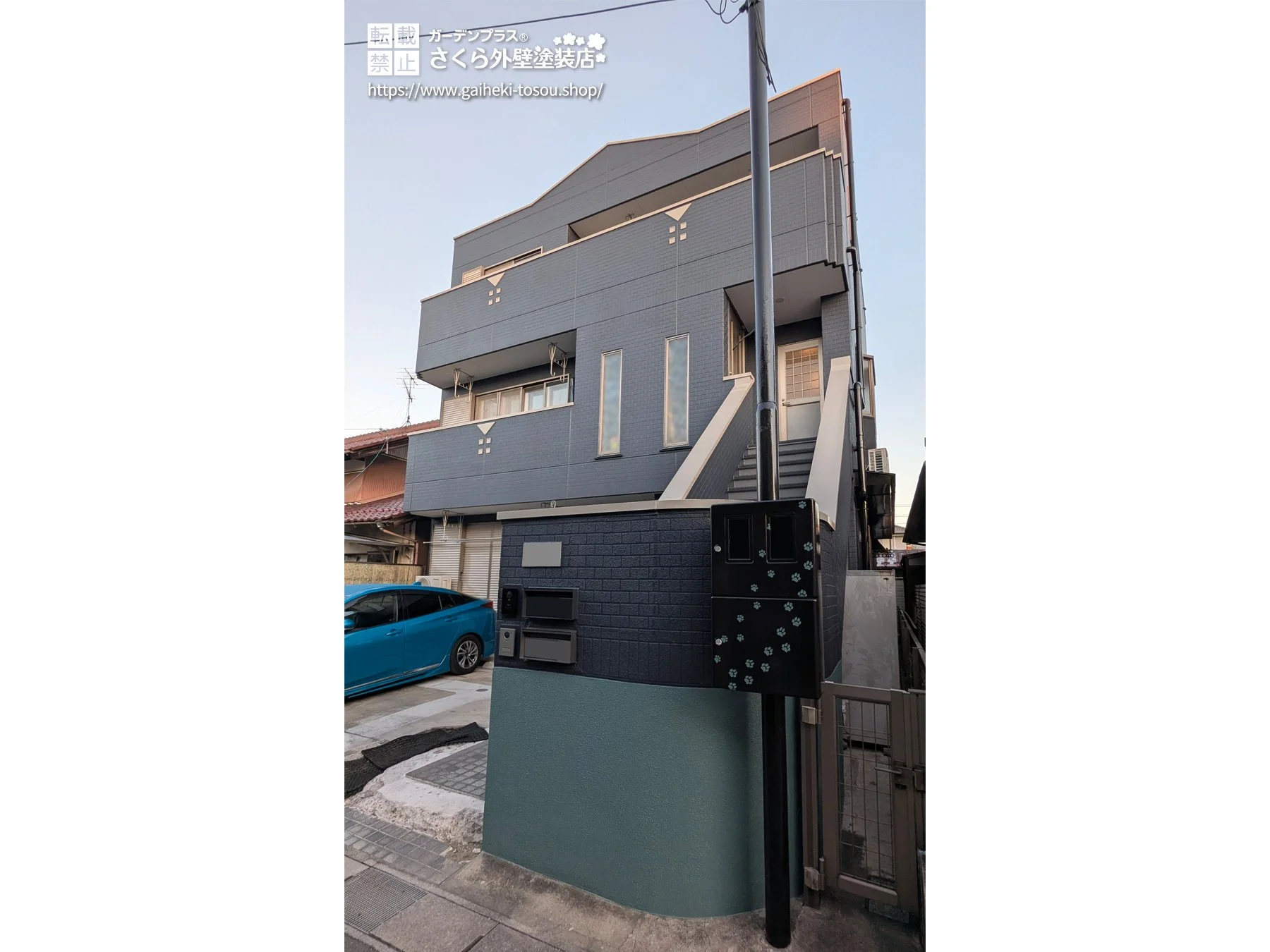 外壁材 窯業系サイディング レンガ調から大胆チェンジ!シックなブルーグレーでモダンに生まれ変わった外壁塗装・屋根塗装工事