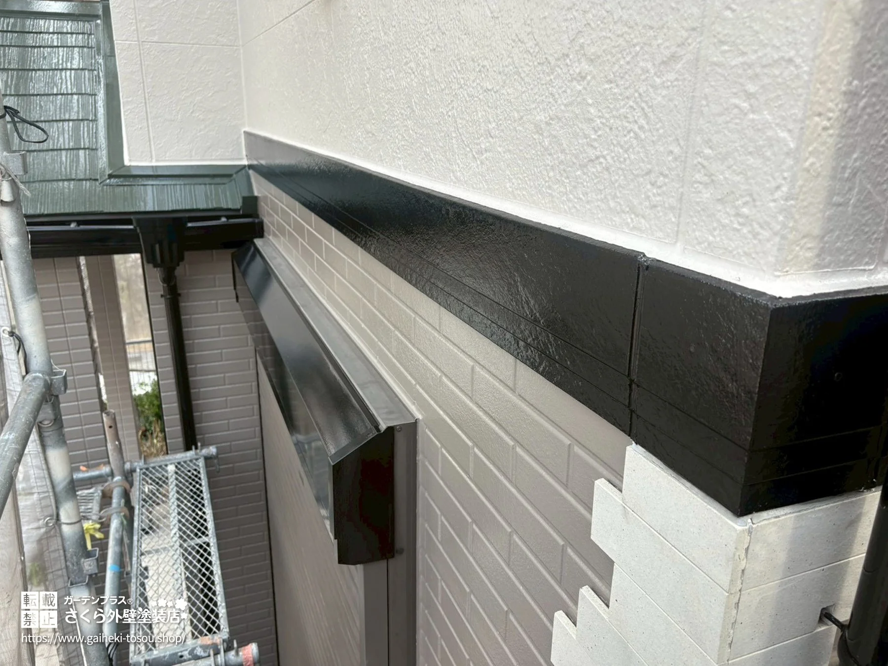 そのほか、高圧洗浄をはじめ、シーリング打ち替え、破風板、雨樋、シャッターBOX、水切り金物、帯板の各部塗装を実施。