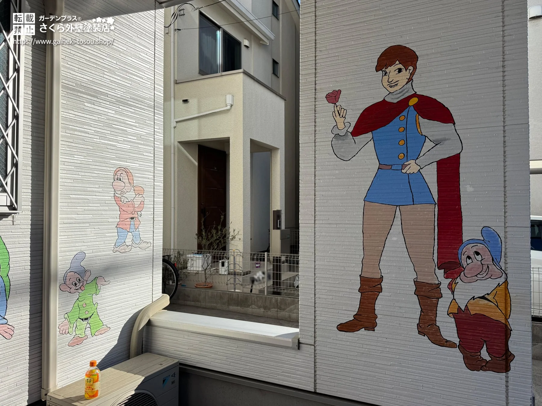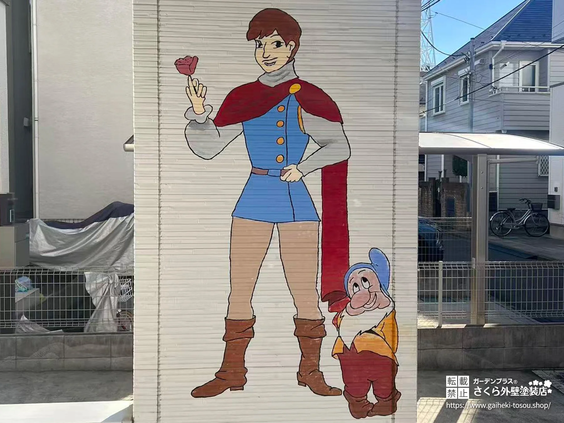 外壁に描かれていたイラストを消し、元の状態に戻したいとの思いから、外壁塗装をご依頼いただきました。
