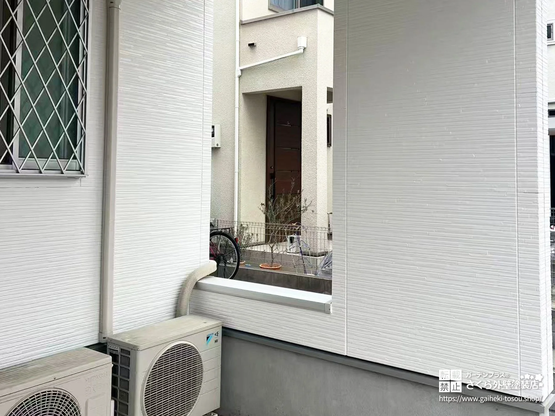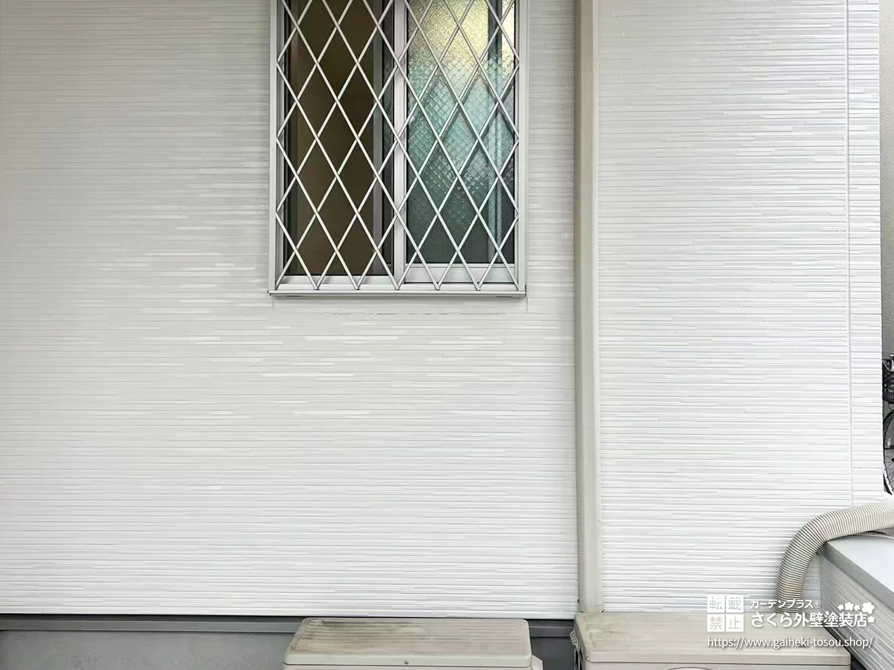 イラストを消したことで、外壁本来のホワイトが際立ち、すっきりと清潔感のある外観へと仕上がりました。