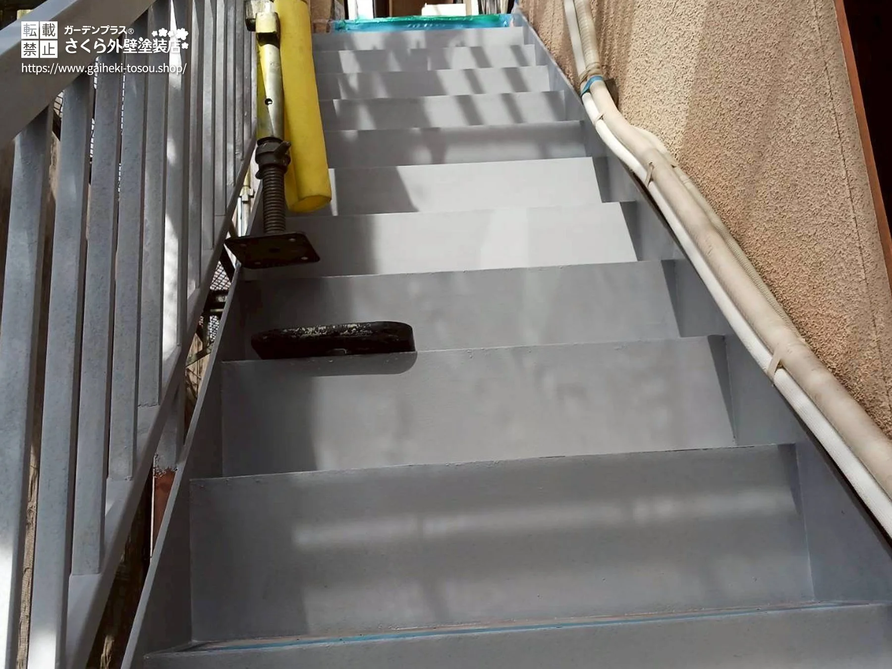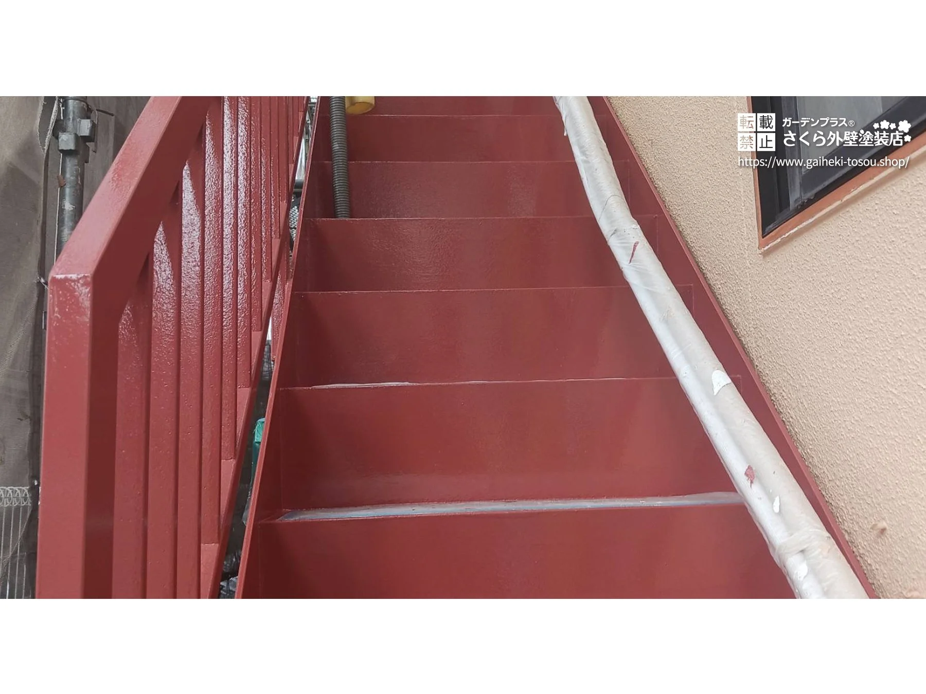 そのほか、高圧洗浄、軒下修繕工事、階段上通路床修繕、破風板塗装、鼻隠し板塗装、鉄骨階段塗装、バルコニー防水工事など、建物全体をトータルでメンテナンスしました。