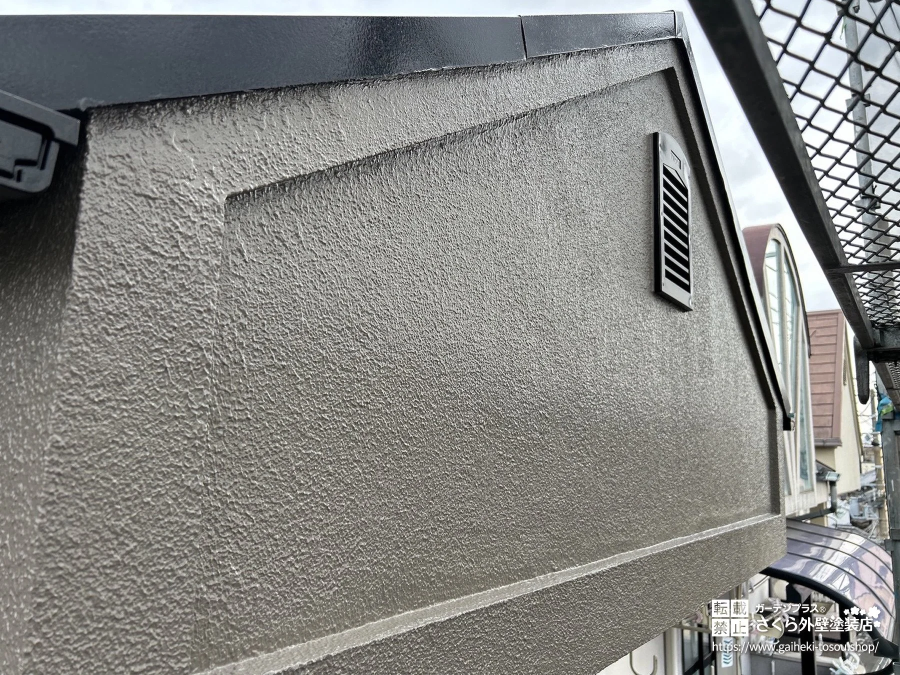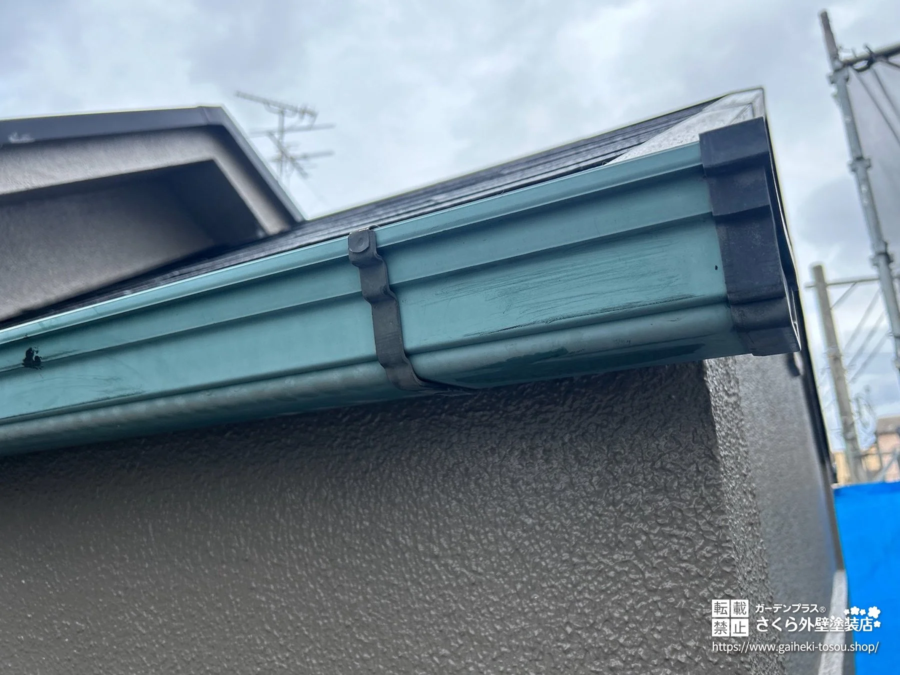 また、外壁と屋根のほか、雨樋やシャッター、バルコニー手摺り・面格子などの付帯部も丁寧に塗装を施しています。