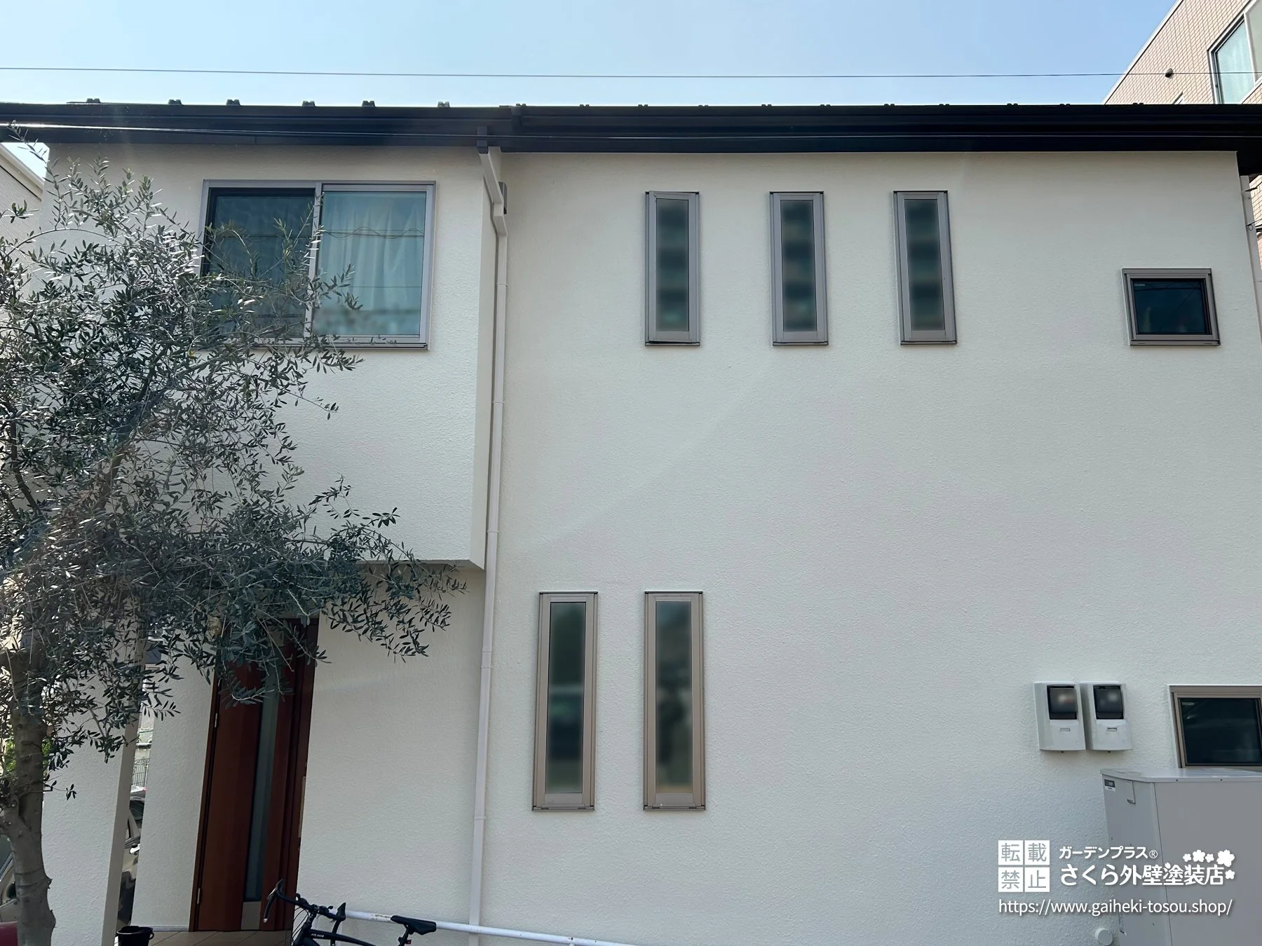明るさと上品さを兼ね備えた、おしゃれな印象の外壁塗装工事です。