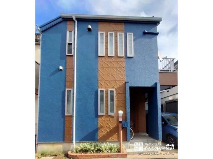 【東京都江戸川区】鮮やかなブルー×優しい色味のブラウンのアクセントが目を惹く外壁塗装・屋根塗装工事