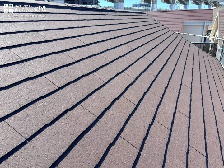 また、今回外壁と合わせて屋根の塗装も行いました。屋根には「グランセラベスト2液ファイン」を採用。防藻・防カビ効果も優れており、ツヤ感をいつまでも楽しめる屋根に生まれ変わりました。