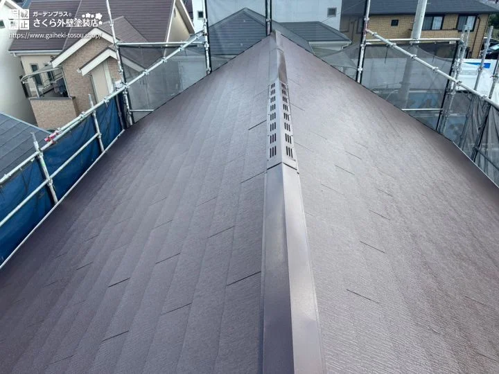 また外壁と同じタイミングで屋根塗装も行いました。屋根には同じく関西ペイント社の「アレスダイナミックルーフ」を塗装しました。