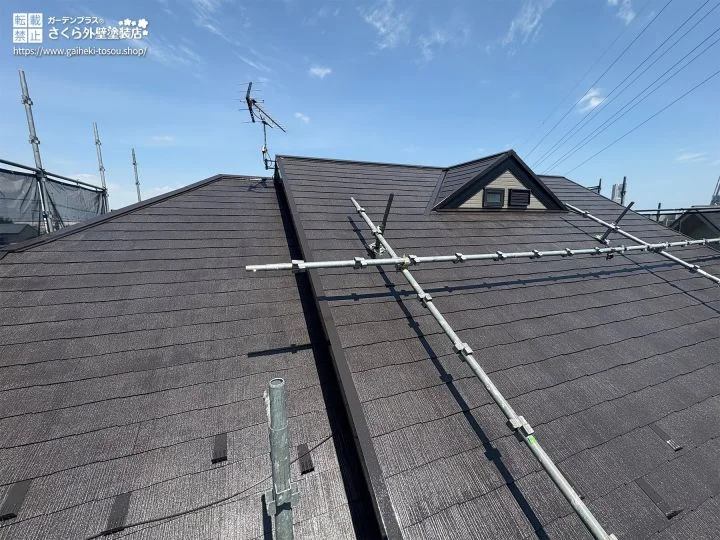 また、外壁塗装と合わせて屋根の塗装も行いました。屋根には、アステックペイント社の「スーパーシャネツサーモF」を採用。屋根からの熱の侵入を防ぐことで、室内温度の上昇を軽減してくれます。