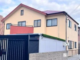 リノベーションした和風住宅のスタイリッシュなクリーム色の外壁塗装