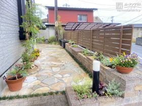 ブラウン×ホワイト、かわいいナチュラルモダンの外壁デザイン