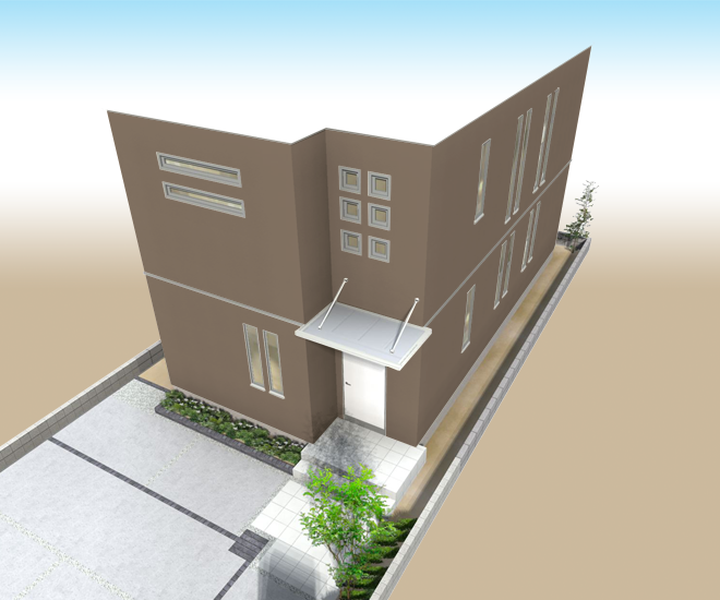 洋風モダン住宅のモダンなライトベージュ色の外壁塗装