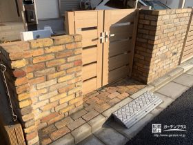 外構一式リフォームを承りました。お住まいの色調に合わせて、柔らかなイエローブラウンを基調とした外構デザインに。門袖にはレンガを、エクステリアには木目調を取り入れ、自然の温もりや優しさを感じるファサードに仕上げました。