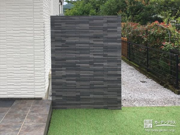 目隠し塀:コンクリートブロック + タイル貼り LIXIL サイモン