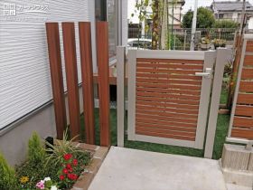 この度は大変お世話になりました。雨風の強い日も作業をしていただいて、無事完成しました。憧れのお庭も小さいながら可愛くしていただき、早速お花を植えて楽しんでいます。本当にありがとうございました。