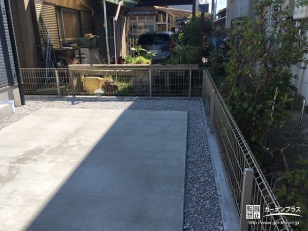 駐車スペース:土間コンクリート + 伸縮目地 + スリット砂利