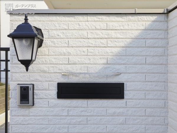 新築外構一式工事を承りました。白を基調とした建物に合わせて、上品な白いタイルや塗り壁でコーディネート。駐車スペースにはシャッターゲートを設けて堅牢にしながらも、門柱と同じタイルを使って上品に仕上げました。程よい目隠し性で閉塞感を感じさせない、クローズスタイルの新築外構です。
