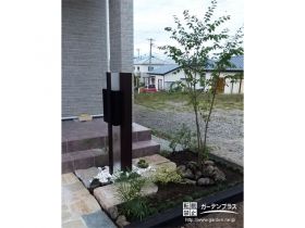 ロックガーデン風のモダンな植栽スペースと機能門柱