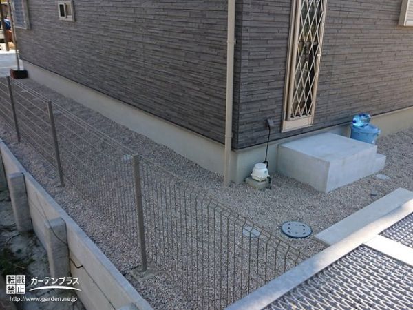 新築のお住まいに駐車スペースや境界フェンスを施工しました。土間コンクリートを打設した駐車スペースには、強風にも耐える丈夫な折板屋根のカーポートを設置。また道路境界には木目調の目隠しフェンスを施工しています。大きなエクステリアが敷地の広さを感じさせる外構工事です。