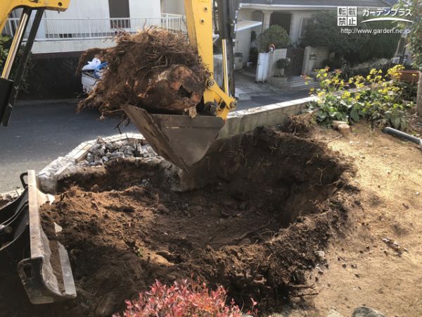 門まわりを解体し、バリアフリーの駐車スペースとアプローチを作りたいとご依頼をいただきました。道路と高低差がある敷地で土留めと一体化した門柱でしたので、駐車スペースに必要な分だけを解体し土間コンクリートを打設。また玄関もポーチを解体して駐車スペースと均一な高さにし、洗い出し仕上げにしました。玄関前に駐車スペースができたことで室内からの移動も最短距離となり、残した植栽スペースでガーデニングもお楽しみいただけます。