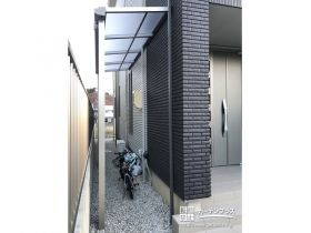 細い犬走りを駐輪スペースとして活用するテラス屋根の設置