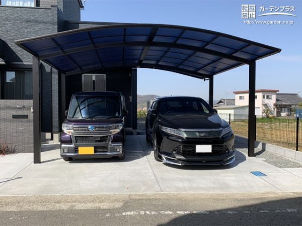 カーポート:Value Select プレシオスポートワイド ブラック + 熱線遮断ポリカーボネート屋根 スカイブルー