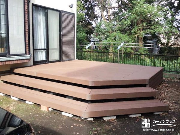 ウッドデッキを台形に加工し、お庭を広く有効に活用できるよう、設置致しました。