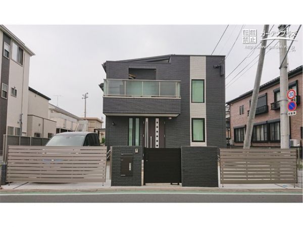 新築のお住まいをクローズ外構にしたいとご依頼いただきましたが、接道部が広いという立地条件を生かし、大きな門扉やカーゲートを2基設置した出入りしやすいファサードプランをご提案しました。建物東側には目隠しフェンスを設置しましたが、一部はスライド門扉を取り付けて、駐輪スペースへ出入りしやすくしています。安心感がありながら、生活しやすい動線設計を心掛けたクローズ外構です。