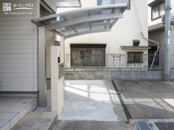 既存の駐輪スペースにサイクルポートを設置したいとご依頼いただきました。まずは元々あった境界ブロックや門柱前の御影石平板、砂利を撤去して十分なスペースを確保。姉妹店のエクスショップと大手メーカーのコラボ商品「ValueSelect プレシオスポート」をサイクルポートとして設置しました。コスパも良く、スマートなデザインでお住まいにもフィットしています。また、スカイブルーのポリカーボネート屋根が雨や紫外線を遮断して、自転車やオートバイを守ります。玄関までもスムーズに行き来できるように足元は、砂利敷きからフラットな土間モルタルで舗装し、荷物を持ったままでも安全に歩行できるようになりました。これから先お子さまの乗り物が増えても、余裕をもって駐輪できるスペースが確保できたので安心です。