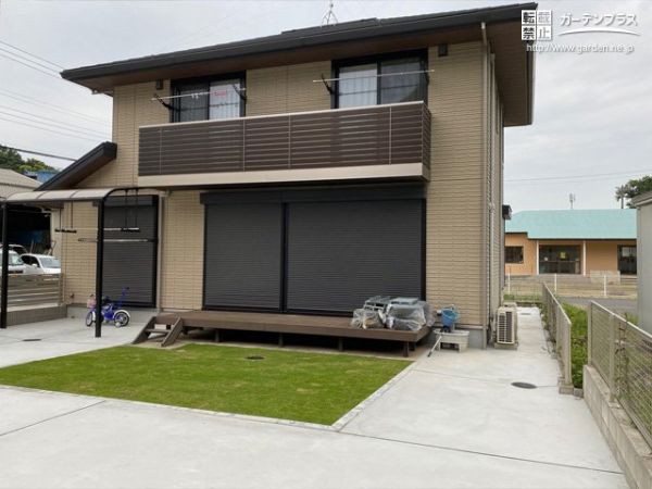 雑草対策のため、広い主庭や犬走り、裏庭を土間コンクリートで舗装しました。約174平米にコンクリートを打設し、雑草の生えないすっきりしたお庭にリフォーム。余計なものがなくなったことで、隅々まで活用できるお庭になりました。ウッドデッキの前だけ芝生スペースを設けて、ナチュラルな緑の手触りを楽しんでいただけます。