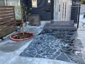 アプローチ:乱形石貼り ナチュラルストーン クリスタルクォーツブラック乱形