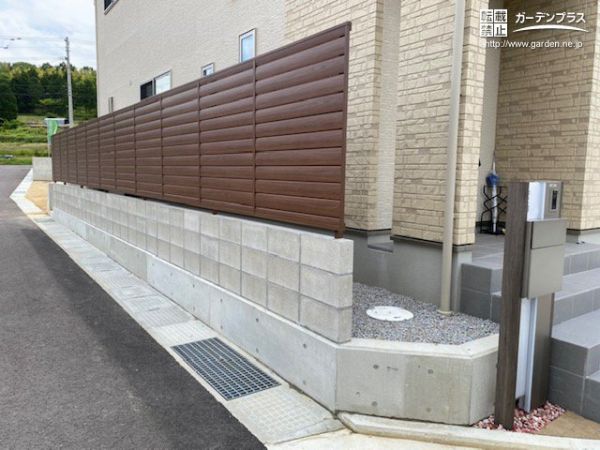 土留め擁壁の上に設置した目隠しフェンス