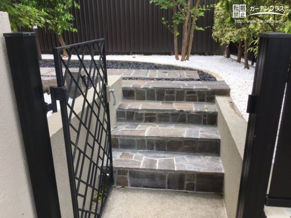 主庭階段:乱形石貼り メイクランド 諏訪鉄平石