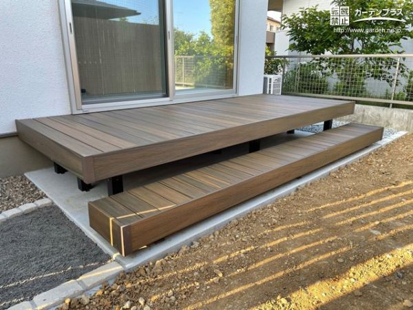 ウッドデッキ:タカショー エバーエコウッド リアル オリーブ + 正面段床1段