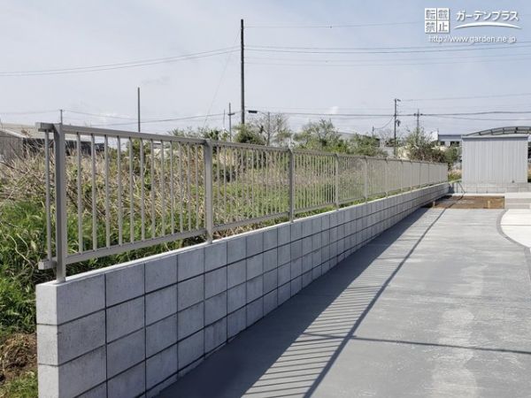 境界フェンス基礎ブロック:ブロックベース + コンクリートブロック