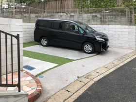 駐車スペース:土間コンクリート + 人工芝