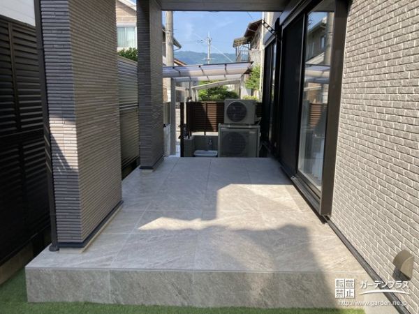 タイルデッキ:下地コンクリートブロック + タイル貼 600角