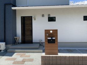 玄関ドアとリンクしたデザインの機能門柱